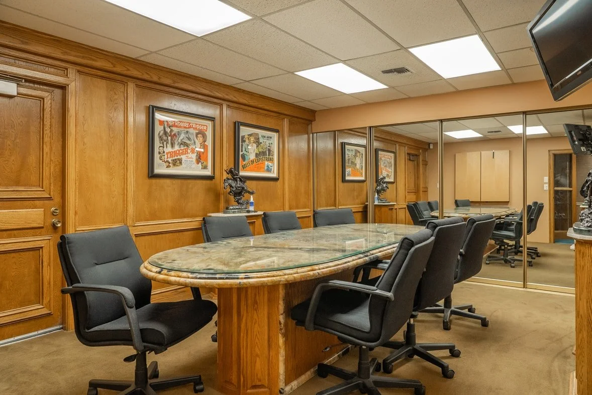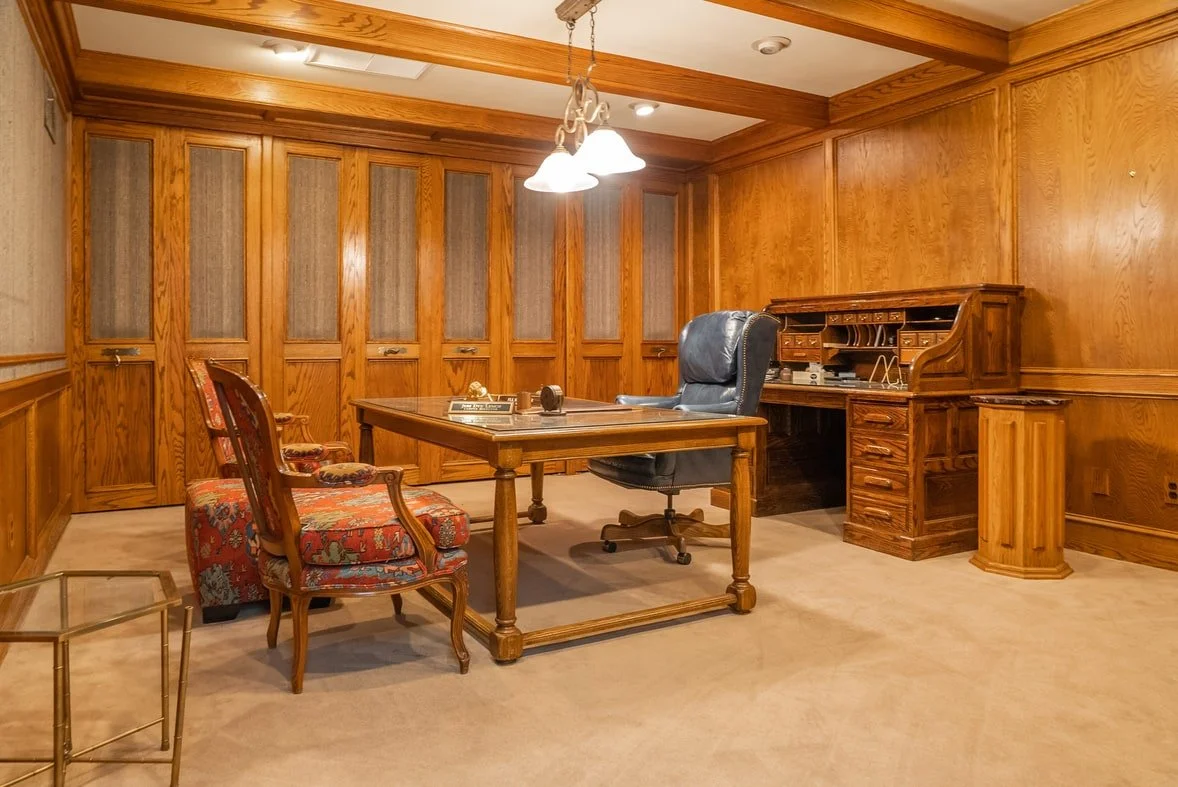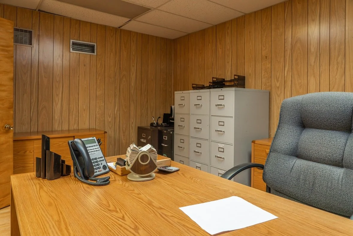 Built in the 1970's, this 4,420 square foot office flaunts the original vintage interior with an array of textured walls, wood paneling and retro carpets. It features a reception area and five individual offices, including a master office with its own private bathroom and a hidden, “executive” wet bar. The conference room contains a 10 ft granite conference table, a bulletin board, and a concealed, but serviceable kitchen. The office includes two additional bathrooms, a break area, and two storage or vanities rooms. We also offer gated parking for up to six cars or two box trucks and additional private parking in the alongside the building.